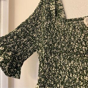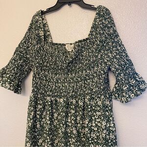 Just Found green floral dress smocked boho summer square neck romantic plus 2X