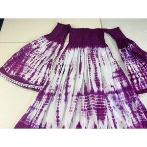 Just From Bali Purple Tie Dye Off Shoulder Bell Sleeve midi Dress one size S ,M