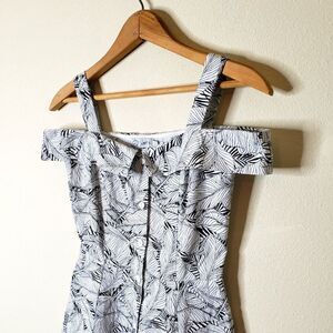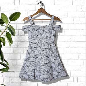 Just G. Cold Shoulder Black & White Fit & Flare Mini Dress;