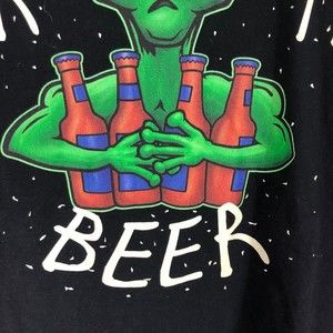 Just Here for the Beer Black Light Glow in the Dark T-Shirt; Alien & Beer SZ L