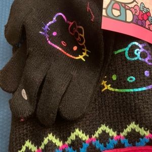 Brand new, with tags. Hat and glove set for the little Hello Kitty fan! This set is splashed with rainbow colors, including metallic rainbow images of Hello Kitty as pictured. One size fits most.