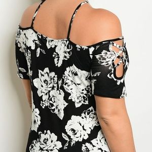 Sophisticated and SEXY cold shoulder spaghetti strap black and white floral top. This could be paired with so many different options..comes from a smoke and pet free home.