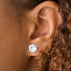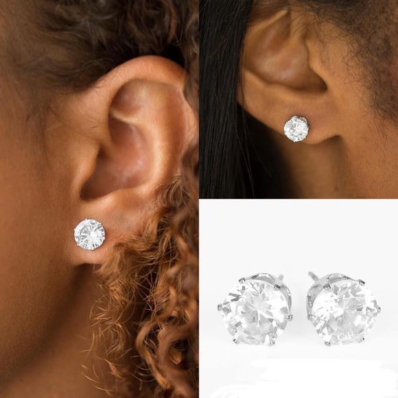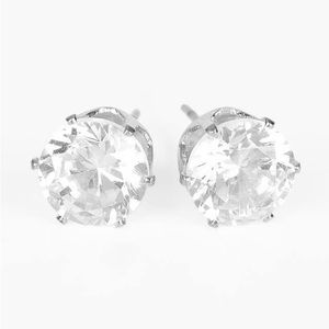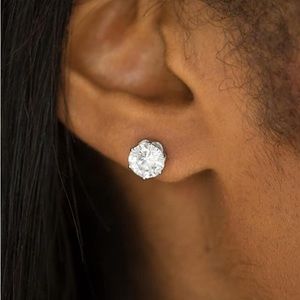 Detail ~ A sparkling white rhinestone is nestled inside a classic frame for a timeless look. Earring attaches to a standard post fitting.