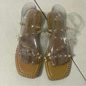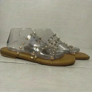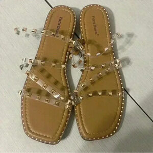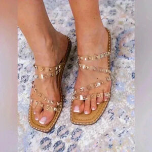 Just Kickin' It Tan/Clear/Rose Gold Studded Sandals - SHO2532TN