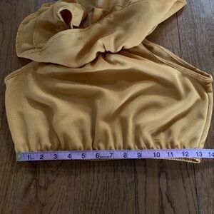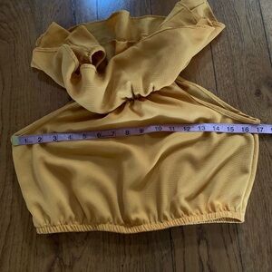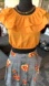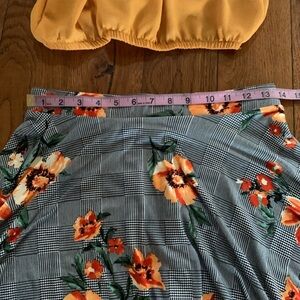 Cropped top and floral print flare short/mini skirt elastic waistband gold/mustard color varies due to lighting great for spring break smoke/pet free home