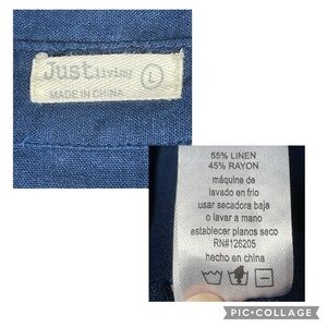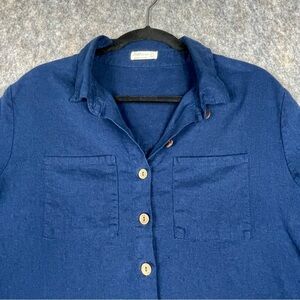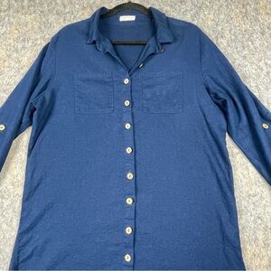 Just Living Linen Minimalist Lagenlook Loose Flowy Button Up Shirt Dress - Sz L