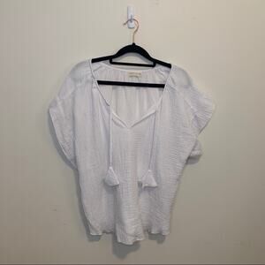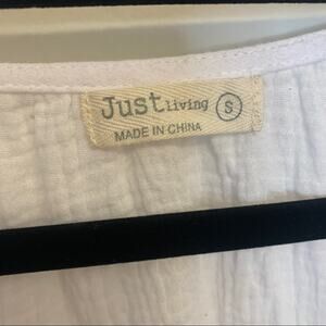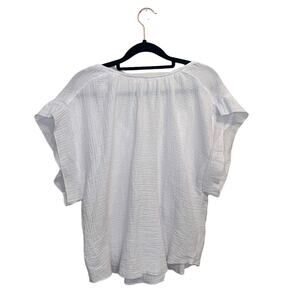Just Living White Gauzy Short Sleeve Ruffle Top 100% Cotton Small
