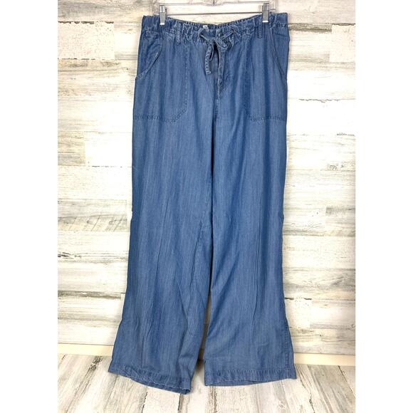 Just Living Womens L Tencel Lightweight Tie Waist Wide Leg Denim Jeans NEW