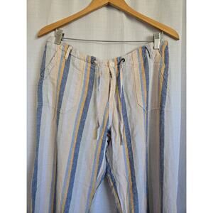 Just Living Womens Large Linen Blend Stripe Wide Leg Pants Coastal Pants Beachy