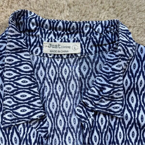 Just Living Women's White & Navy Button Up Shirt - L - VGUC - Rayon Linen Blend