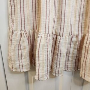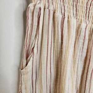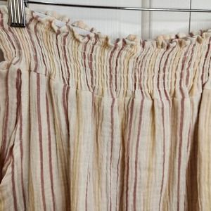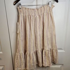 Just Living XL 100% Cotton Pull on Skirt with Pockets Ivory with yellow,red stripes Ruffle Smocked Elastic-waist