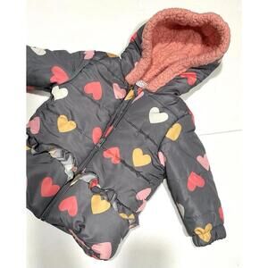 Just Lizzy Toddler Girls' 18 Mo GreyHeart Printed Heavyweight Puffer Jacket