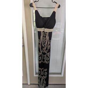 Just Love Puff Print Crochet Strap Black Maxi Dress Boho Spring Summer Size M