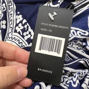 Just Love Womens Kaftan Dress Empire Waist Maxi Floral Print Blue White XL