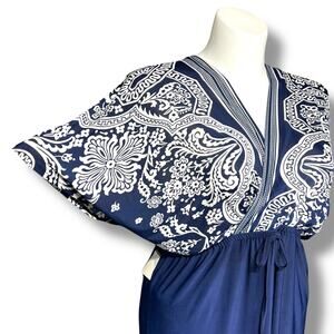 Kaftan Dress Empire Waist Maxi Floral Print Blue White Just Love