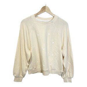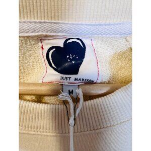 Just Madison Hearts Cotton Sweatshirt Medium Pearled Ivory Crew Neck Athleisure