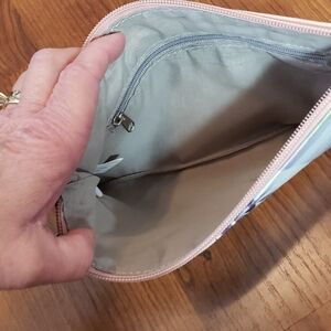 Tan fabric interior with one zipper side pocket