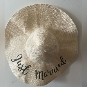 “Just Married” Floppy Straw Embroidered Sun Hat