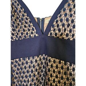 Just Me Navy Blue and Nude Dress with a Crocheted Overlay. Size M.