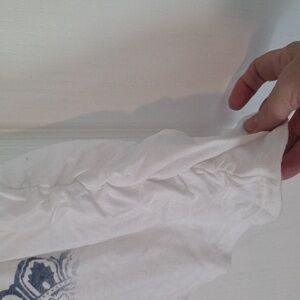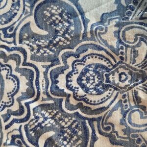 EUC Just My Size by Hanes white tshirt with blue design and blue glitter highlights. Size 5X Some ruching on sides at bottom. Approximate flat lay measurement: p2p 28" NonSmoking home
