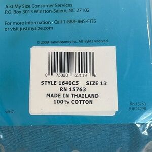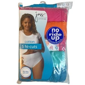 New old stock. Lot of 3 packs, 5 pairs each pack, 15 total pairs of underwear. 2009 Hanesbrands Inc. Each pack includes 5 pairs of cotton underwear briefs panties. Size 13 or a 30/32 dress size. JMS fits who you are. Classic style with a generous, full cut and perfect in fit. 4 solid colors (pink, orange, blue, green) and 1 pair with a heart print. Please see all gallery photos. We are a smoke free, pet friendly home. Have a great day!