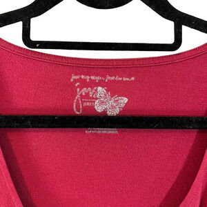 Just My Size Cranberry Blouse Plus 2X Pleated Chest 3/4 Sleeve Knit Pullover Top