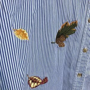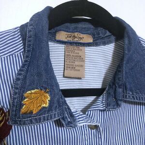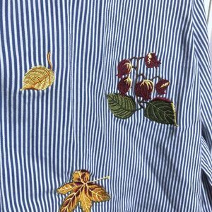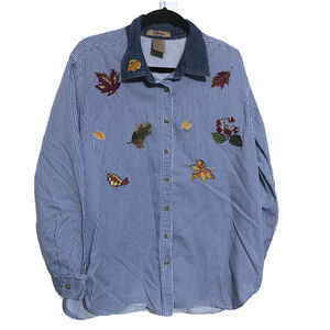 Just My Size Denim Blue Stripe Shirt Embroidered Fall Leaves Womens 14W/16.