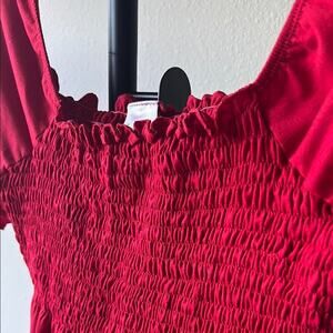 Just My Size Red Smocked Flutter Sleeve Blouse