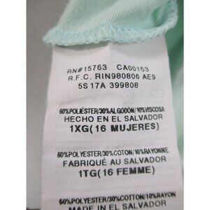 Just My Size Soft Mint Gathered Neck Plus Size Womens Top 16W Short Sleeve