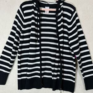 Just My Size Women's 1X Black Striped Hooded Cardigan Long Sleeve