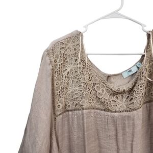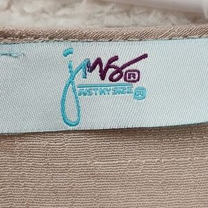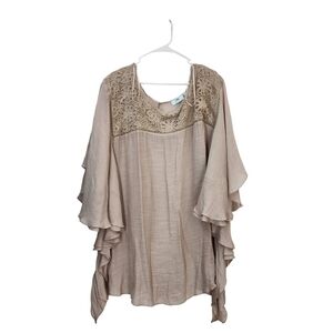 Just My Size Women's Lace Embellished Drapey Blouse Comfy Tan- 3X