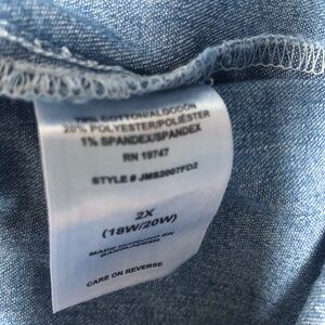 Powder Wash, Elastic Waist, Bling Tab at Hem, 79% Cotton 20% Polyester 1% Spandex, Denim Capris, Size 2X, NWT.