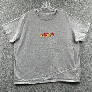 Just My Size Womens Top 18/20W Gray Floral Relaxed Fit Short Sleeve Shirt