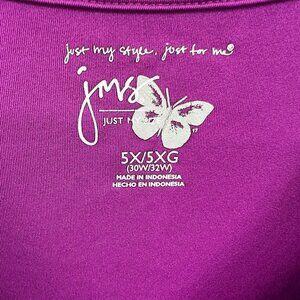 Just My Size Womens Top 5X 30/32W Purple Pullover Short Sleeve Shirt