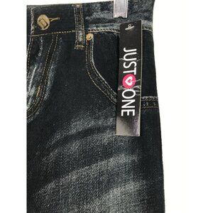Just One Jeggings Womens Size Large Faux Jeans Rise Floral Stretch Distressed