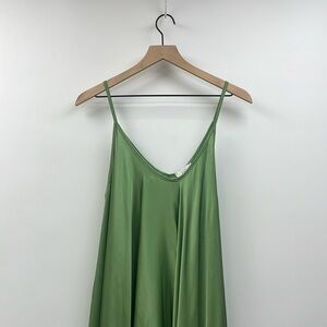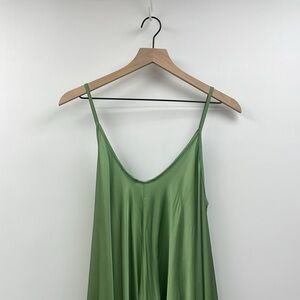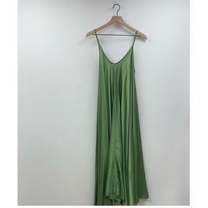 Just One Thing Italian Silk Relaxed Sleeveless Swing Slip Maxi Dress Green OS