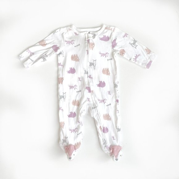 Just One You Baby Footie Onesie, woodland animal print, 6 months
