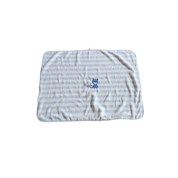 Just One You Little Snuggle Bear Blue White Striped Baby Blanket 30"x40"