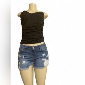 Elevate your style with this chic black ruched sleeveless top. Perfect for any occasion. Better fit S/M