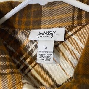 Just Polly Brown Flannel Shirt Jacket Plaid Shacket Size Medium Fall Soft Casual
