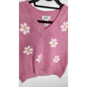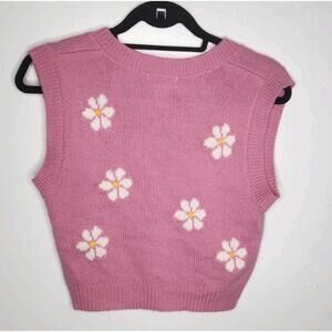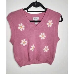 Just Polly NY pink daisy floral sweater vest 100% Acrylic Pastel Academia Preppy