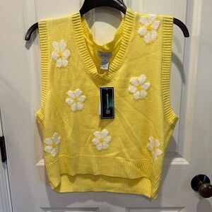 Just Polly New York 2X pink daisy floral sweater vest