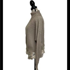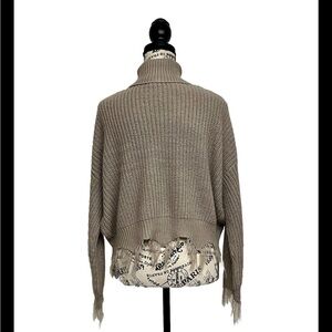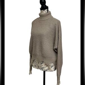 Just Polly New York Tan Crochet Raw Hem Turtleneck Sweater M Boho Boxy Normcore