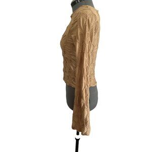 Just Polly New York Tan Textured Long Sleeve Cropped Top Medium