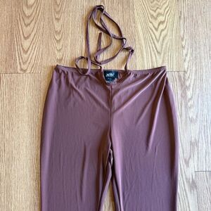 Just Polly New York Women’s Brown Cutout Wraparound Tie Flare Leg Pants Size M
