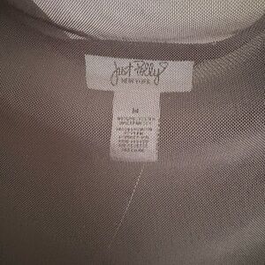 Mesh top long, sleeves, boat neck size medium juniors, sheer, and stretchy mesh fabric undergarment included. Never been worn pet free smoke free home.