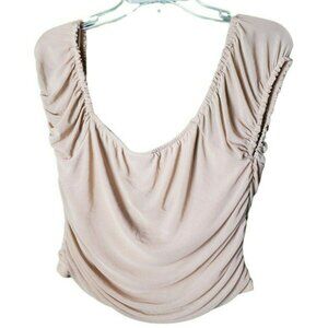 Just Polly Top Blouse Ruched Front Sweetheart Neck Juniors Sz XL NWT Tan