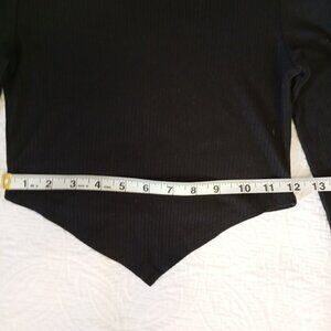 Just Polly Top XS Black Ribbed Long-Sleeve Asymmetrical Hem Womens
