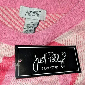 Just Polly Trendy Plus Size Pink Flower Sweater Sz. 3X NWT