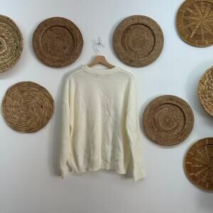 Add a touch of sweetness to your wardrobe with this Polly knit sweater. Featuring a crew neck and a charming bow graphic, this sweater is perfect for adding a feminine touch to any outfit. The white and pink color combination is versatile and easy to style. Ideal for staying cozy during the colder months, this sweater is a delightful addition to your closet. Size XL.